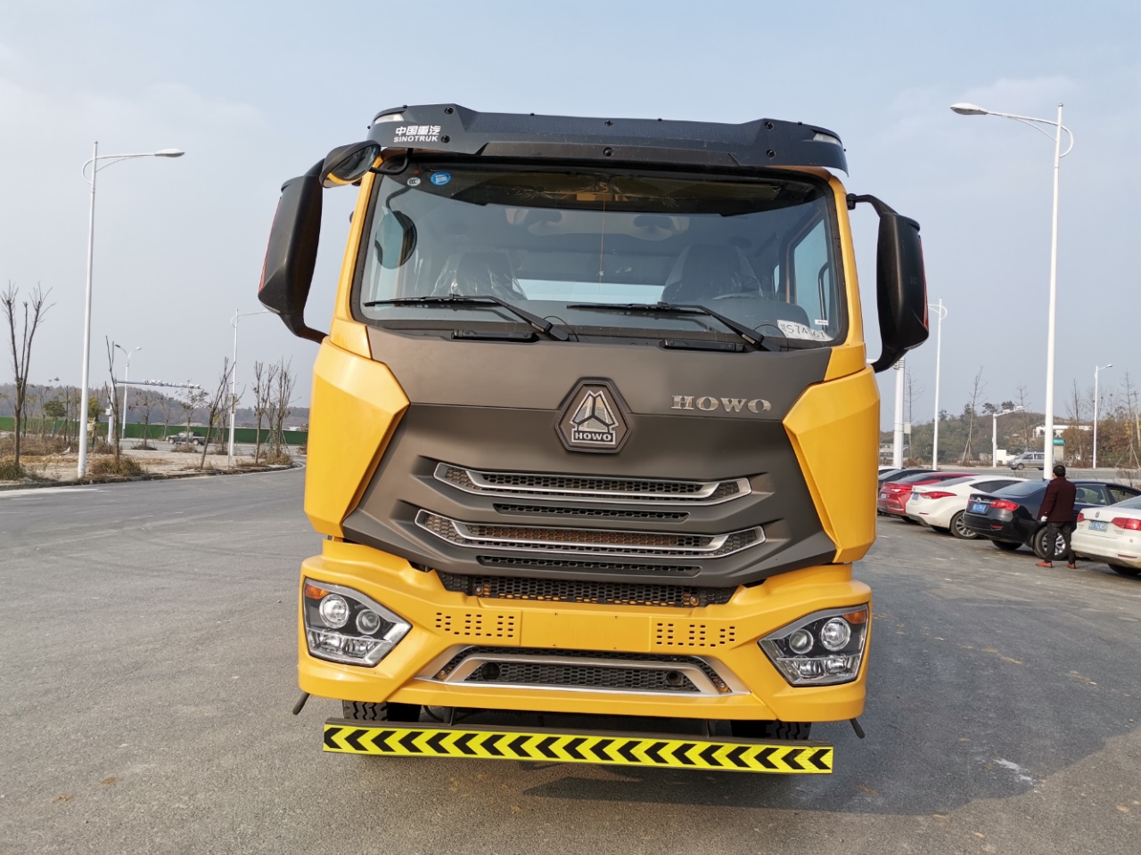 底盤配置:MC07.31-60德國曼310馬力 6000軸距 10檔帶取力器曼16噸雙減橋 豪沃H77L駕駛室輕奢版、7.5噸前橋盤式制動、11.00R20鋼絲胎、雙層車架(8+5/280) 氣囊座椅、空調、多片簧(9/9+6)、ABS、高位保險杠(金屬)、**重汽智能通D版行車記錄儀、電動門窗、遙控鑰匙、中控鎖